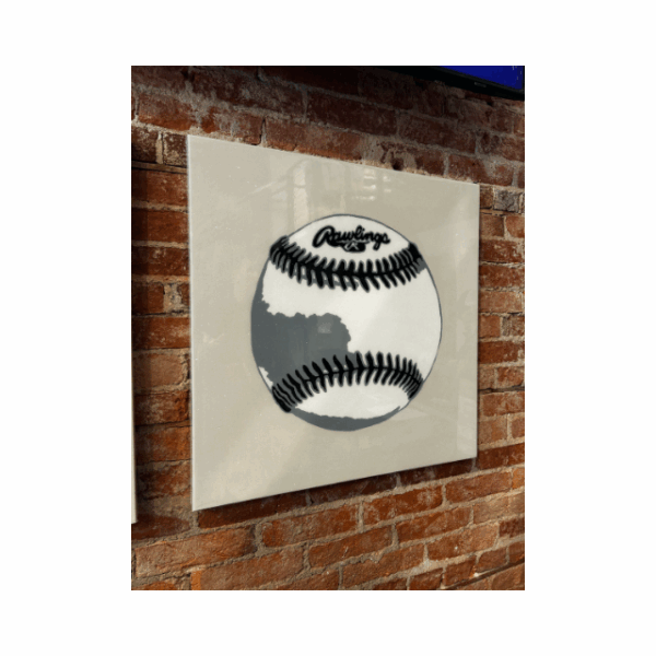 This signature series strips the game down to its most essential form: the ball itself. Each 24×24 inch piece is a minimalist yet luxurious celebration of the sport, executed in high-contrast black, gray, and white acrylics on canvas.